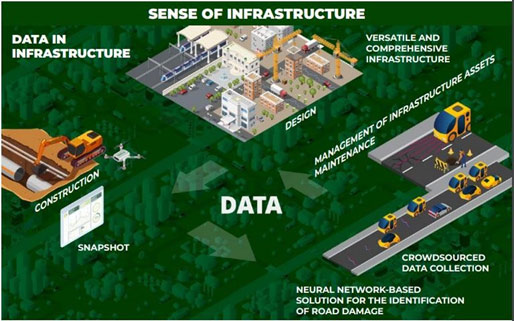 Data plays a significant role in infrastructure planning, construction, and maintenance, and it continues to be acquired through various technical systems and devices throughout the infrastructure lifecycle. Data is at the heart of AI, enabling the utilisation of AI and robotics.